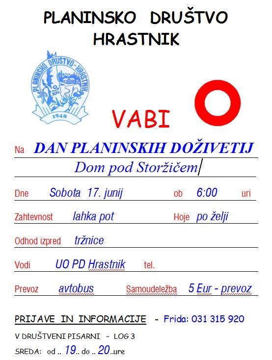 Dan slovenskih planinskih doživetij Posted on June 10, 2017June 10, 2017 by Simon Medvešek Posted in Novice 2017.