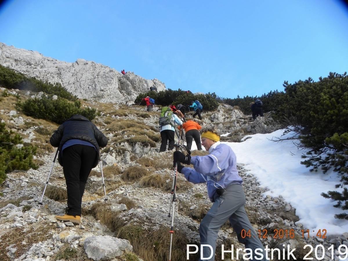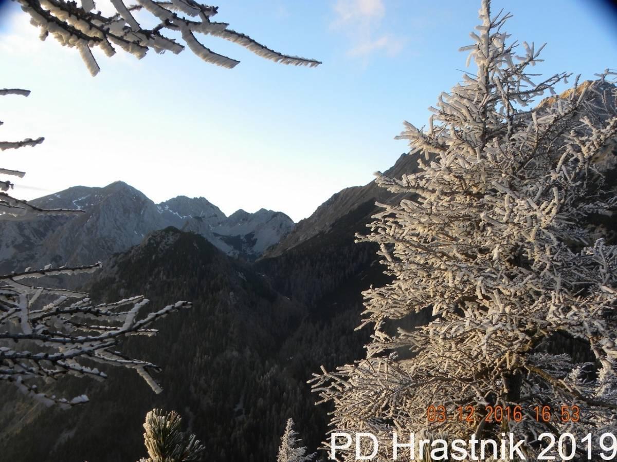 V hladnem decembrskem jutru smo se pripeljali na naše izhodišče, na Ljubelj. Kar malo presenečena sem bila, saj je bilo na parkirišču za ta čas že kar dosti parkiranih avtomobilov. Vidi se, da nas je vsako leto več, ljubiteljev planin ki skušamo izkoristiti lepe dni za potepanje po naših lepih vršacih.
